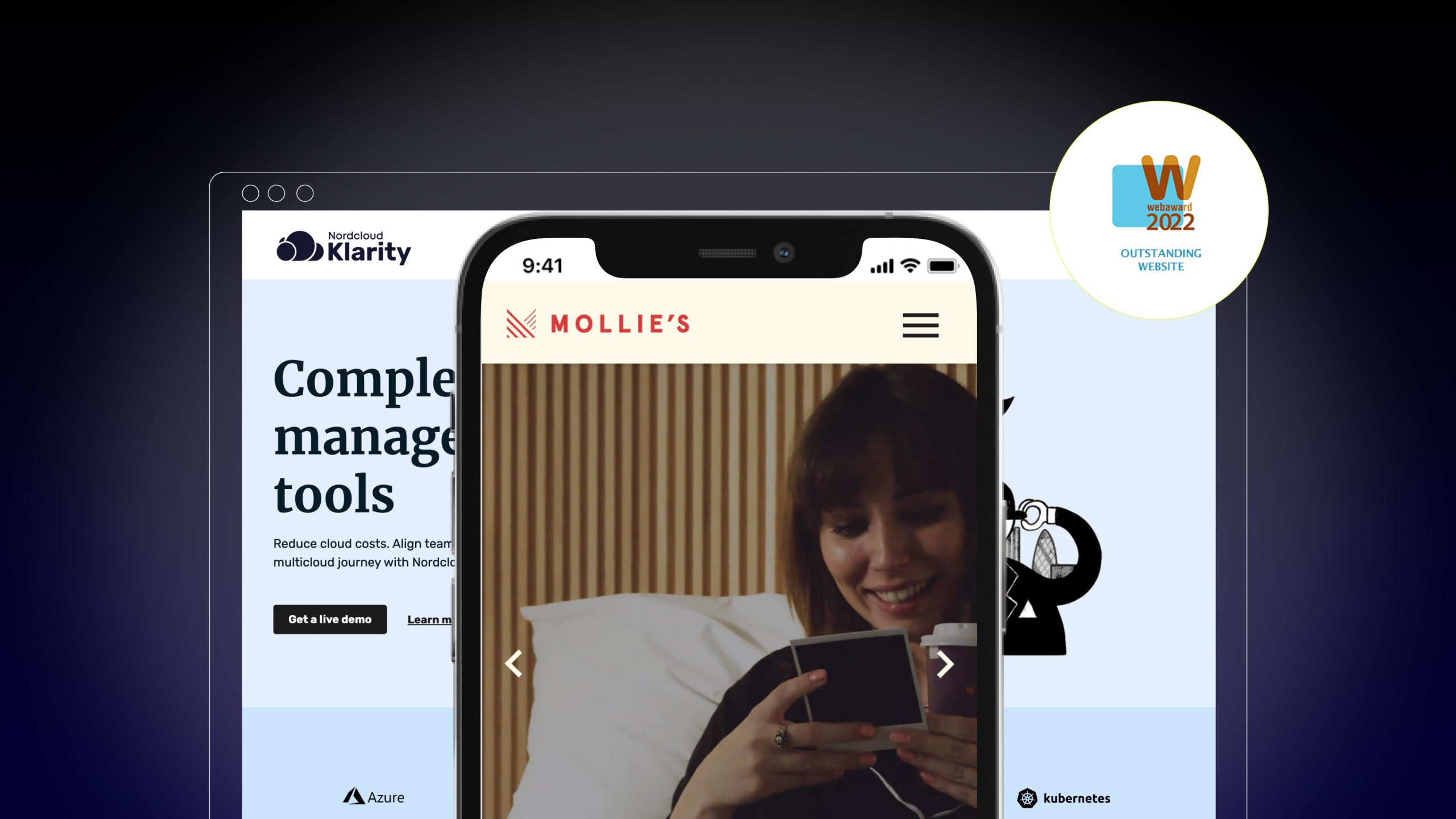 Mollie’s Motel and Diner, a roadside hotel in Oxfordshire, designed by Soho House, received the Best Food Industry Website 2022. IBM company Klarity, who provide cloud management tools, was presented with Outstanding Website 2022.